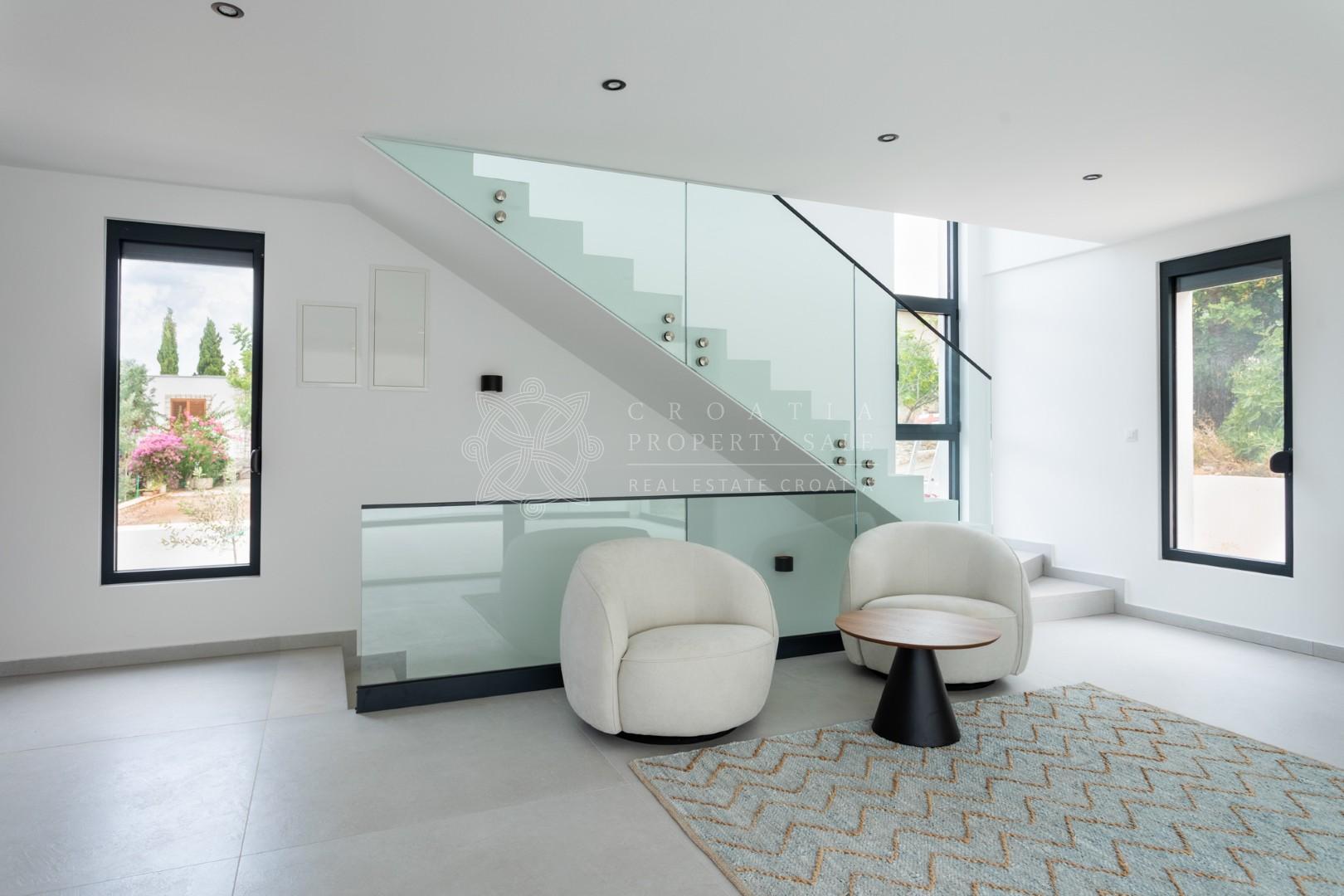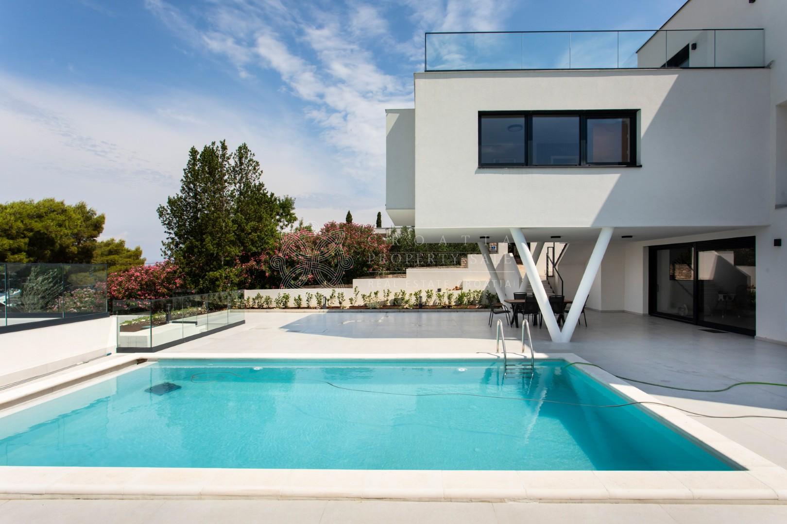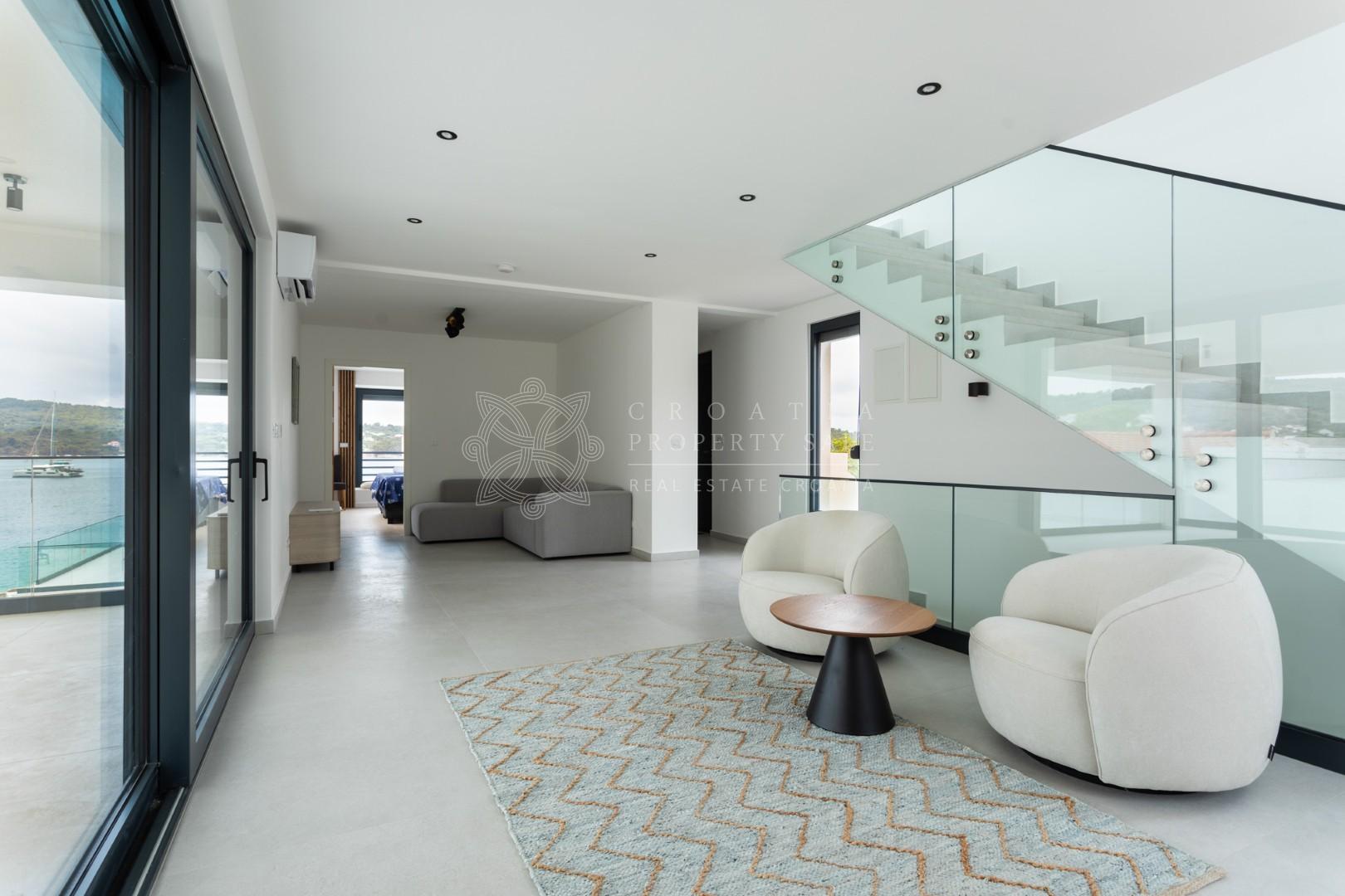 In front of this beautiful villa you can moor your boat, on a free mooring. A beautiful panoramic view of the sea and this beautiful bay extends from all rooms of this newly built villa. The villa is located first row to the sea, oriented to the west, so you can enjoy beautiful sunsets, beautiful colors, while the colors of the sky are reflected in the sea, creating unforgettable moments. There is a pebble beach 30 meters from the villa. You can walk or cycle along this quiet street by the sea, enjoying the beautiful seascape and untouched nature. In a few minutes of walking you are already in nature where there are no houses, so you can walk along well-established paths through nature full of medicinal and fragrant herbs and enjoy an exceptionally beautiful panoramic view of the sea and Split.