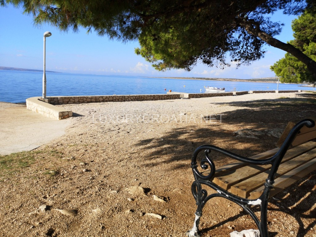 Local amenities include a grocery store, seasonal bakery kiosk, and a seaside restaurant with a terrace. Fresh fish is often available directly from local fishermen. The historic town of Pag is only a 5-minute drive (or a scenic 30-minute bike ride), while the famous Zrće Beach—known for its vibrant nightlife—is just 30 minutes away. The city of Zadar and its international airport can be reached in approximately 40 minutes.